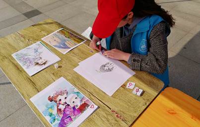 活动现场,我院青年志愿者协会准备了近百张卡通、动漫形象的贴纸,如海绵宝宝、火影忍者、熊本熊……贴纸也可以根据同学们提供的图案进行整改设计。同学们积极参与,纷纷来到现场为暖壶贴上"身份证",并表示非常喜欢志愿者为暖壶制作的独一无二的"身份证"。活动期间,我院志愿者积极向来往同学宣传世界水日,鼓励同学们从自身做起,节约用水,保护水资源。