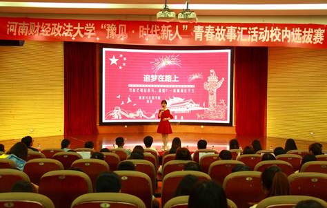 为响应团省委号召,进一步贯彻落实党的十九大精神,学习发扬习近平新时代中国特色社会主义思想,丰富校园文化生活,由校团委主办,我院承办的“豫见·时代新人”青春故事汇大赛决赛于5月24日晚在教一219举行。