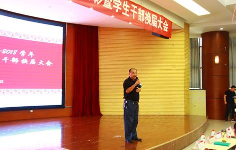 6月12日中午,我院于第一教学楼219教室和220教室分别召开了2017—2018学年学生工作表彰暨学生干部换届大会,我院党委书记徐金安,党委副书记孙海平,团委书记张淼,辅导老师王灿、王昕,100余名受表彰人员以及39名学生干部竞选者参加了此次大会。