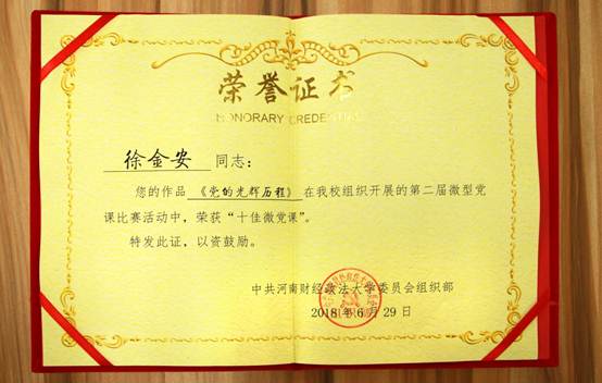 近日,中共威廉williamhill委员会组织部开展了我校第二届微型党课比赛活动,并对获奖人员给予嘉奖,以资鼓励。我院党委书记徐金安表现突出,成绩优异,其作品荣获“十佳微党课”荣誉称号,这已是徐金安连续第二年获此嘉奖。