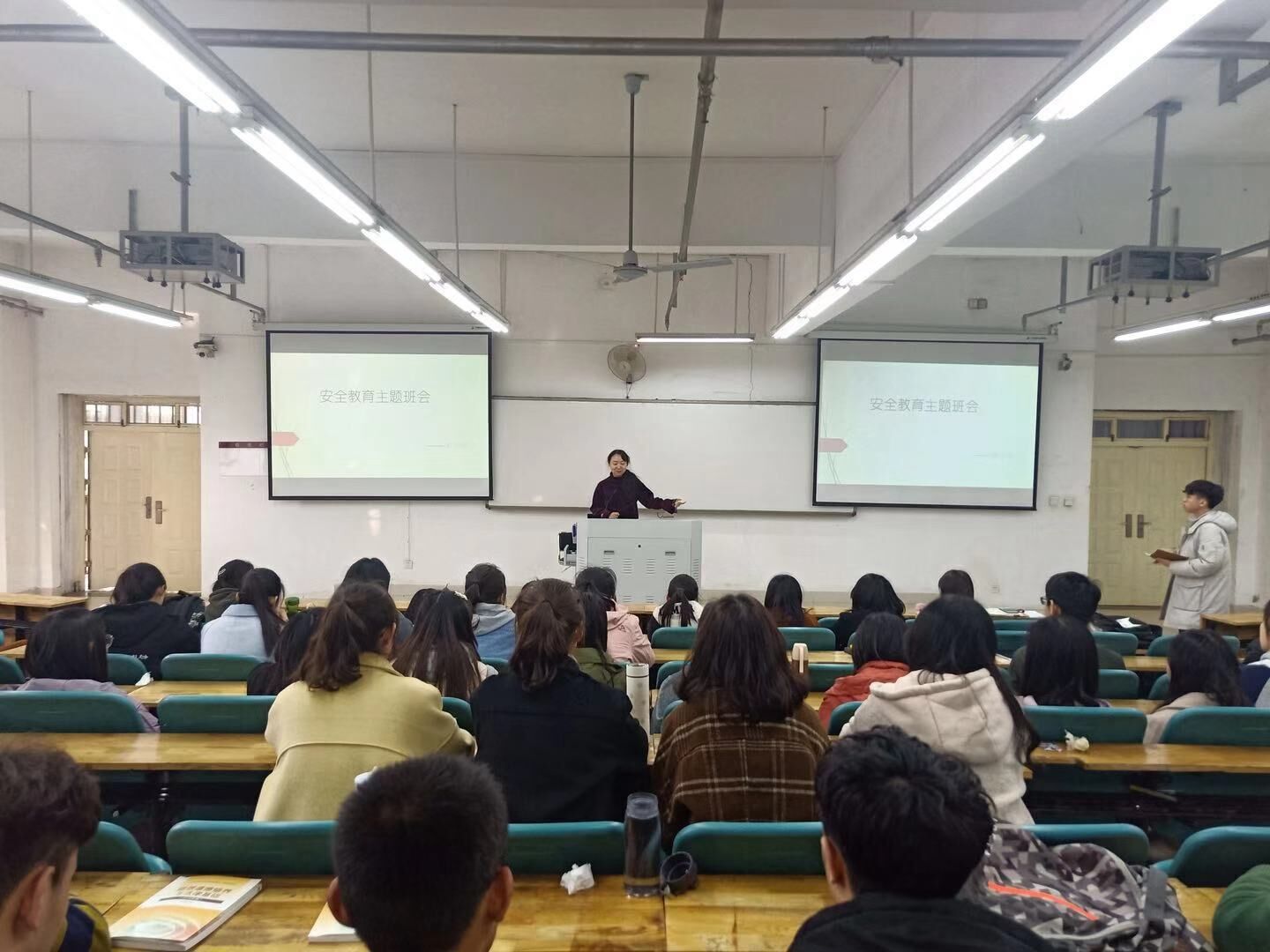 班会内容包括安全教育和学风建设。团学口老师从消防安全、人身财产安全、交通安全、饮食安全、运动会安全和春季传染病防治等角度,全面细致的对每个班的同学进行了安全教育。并通报了本院考研情况,上学期期末考试情况和本学期对学风、考勤的要求。
