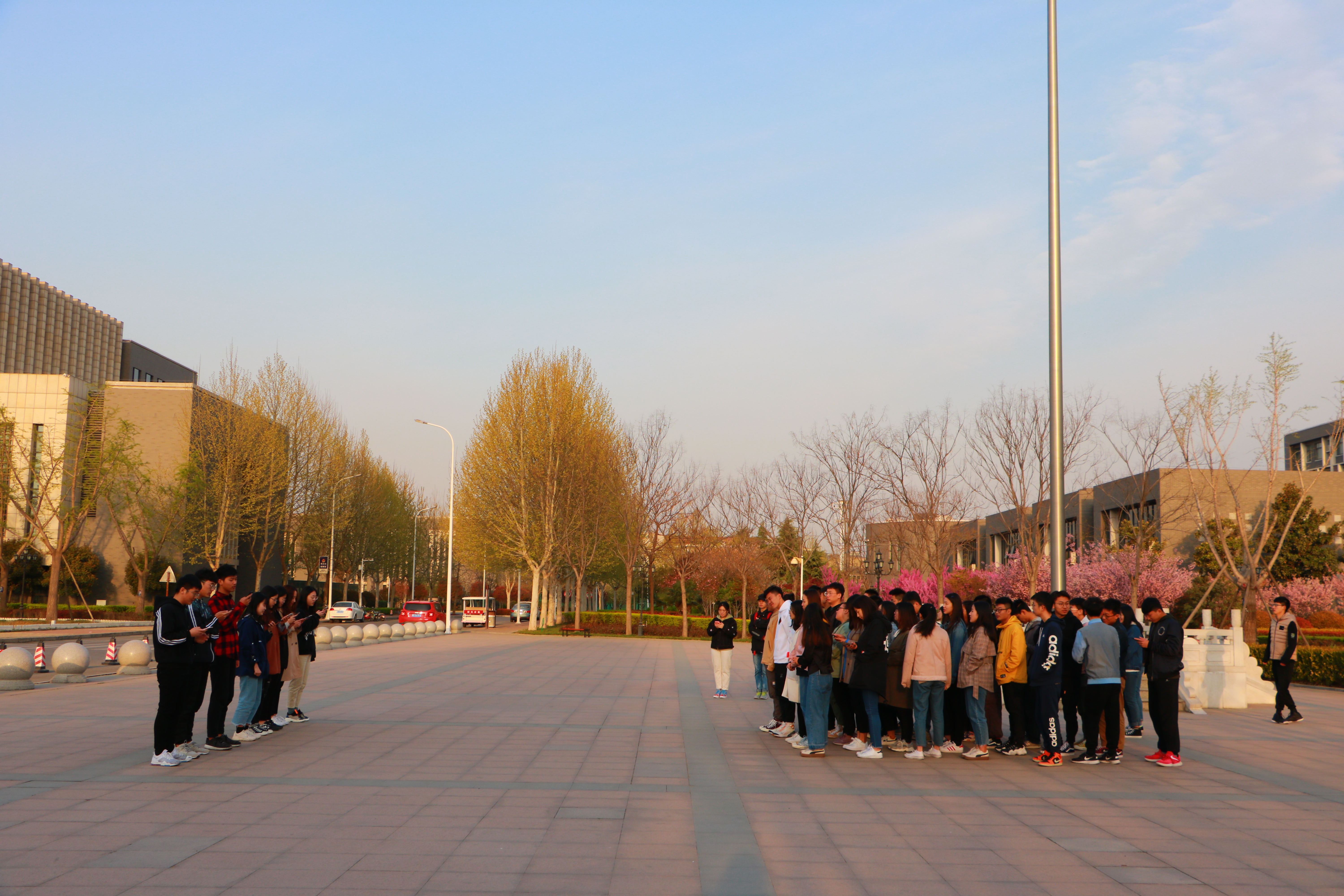 3月30日清晨,我院于郑东校区国旗台前开展 “青春心向党,建功新时代” 第九期青马工程暨团校培训——团队组建及队风展示,我院主要学生团干部主持本次培训。