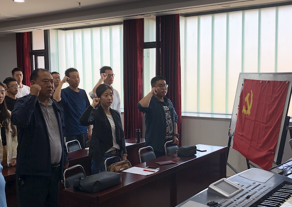 会议最后,全体党员起立,高举右手,面对党旗,目光坚定,怀着对党的忠诚庄严宣誓。通过重温入党誓词的行动,再次提高思想觉悟,严格要求自己,为后续党建工作的顺利进行营造了氛围,奠定了基础。