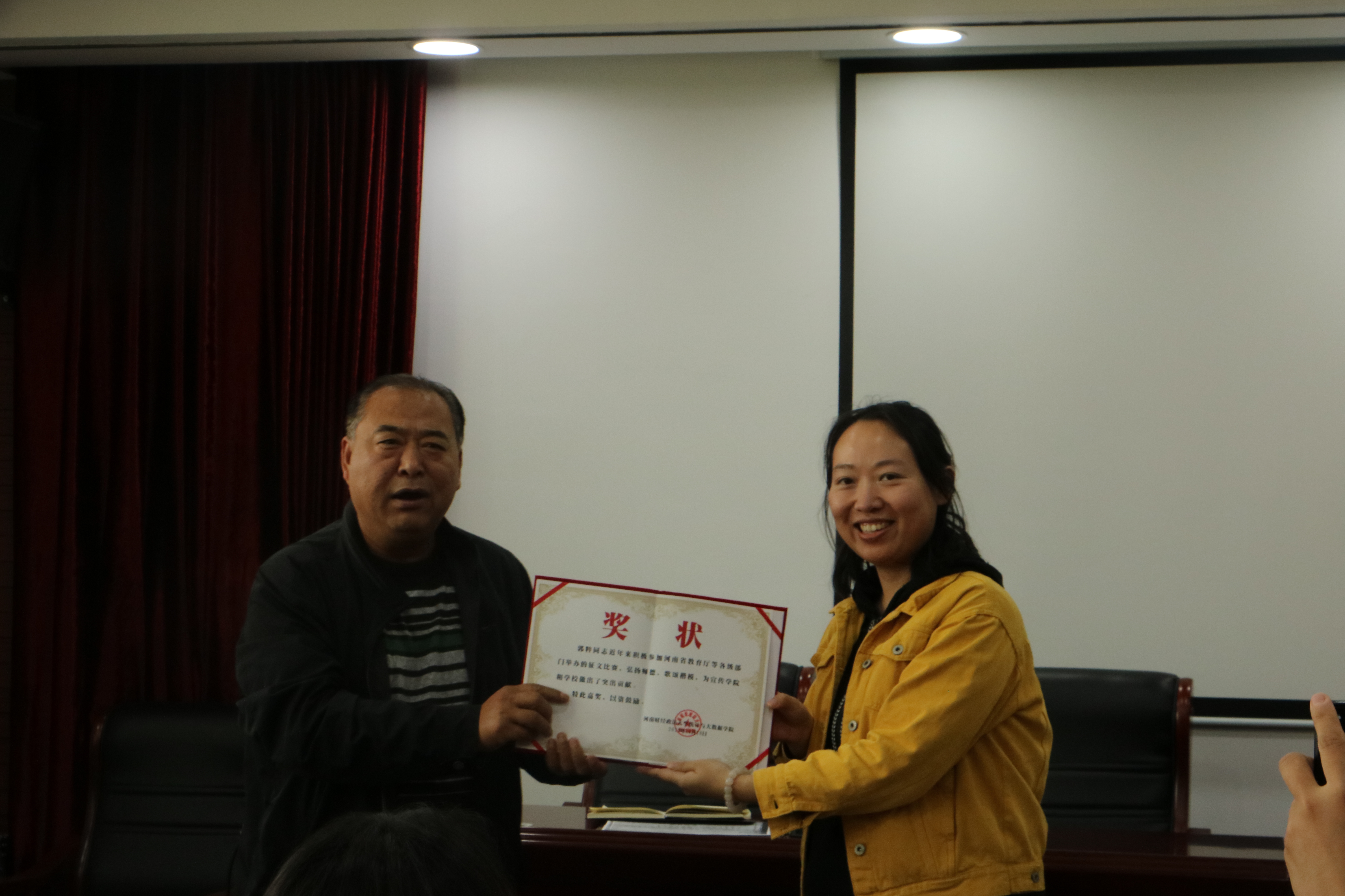 靳刘蕊宣读2019年我院一号文件《关于调整完善院内机构组成的决定》,明确了各部门、各教研室的负责人。苗彤彤宣读二号文件《关于表彰郭粹同志的决定》,肯定了郭粹对宣传学校和学院做出的突出贡献,并由徐金安为郭粹颁奖。随后,专业课教师进行了集体备课,研讨新版统计学教材《课程大纲》、《考试大纲》。