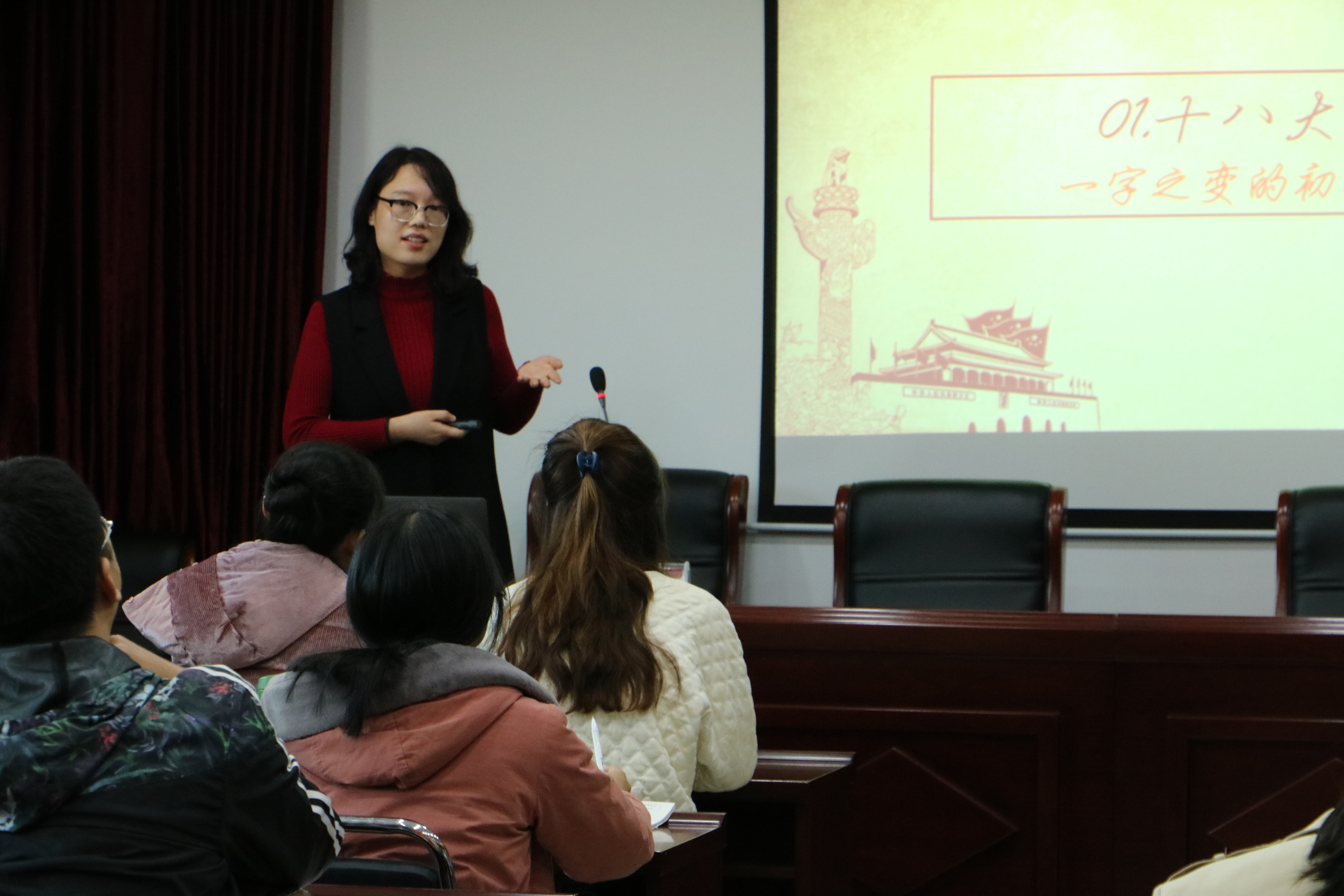 11月18日下午,统计与大数据学院邀请校宣讲团的电子商务与物流管理学院团委副书记刘晔、法学院团委副书记武仕祯、学工部思政科科长张利杰三位老师共同主讲了题为“透过历次党会看中国共产党的使命与担当”的党课,统计与大数据学院师生代表党员共计50人在综合教科楼A座826会议室参加此次党课培训。