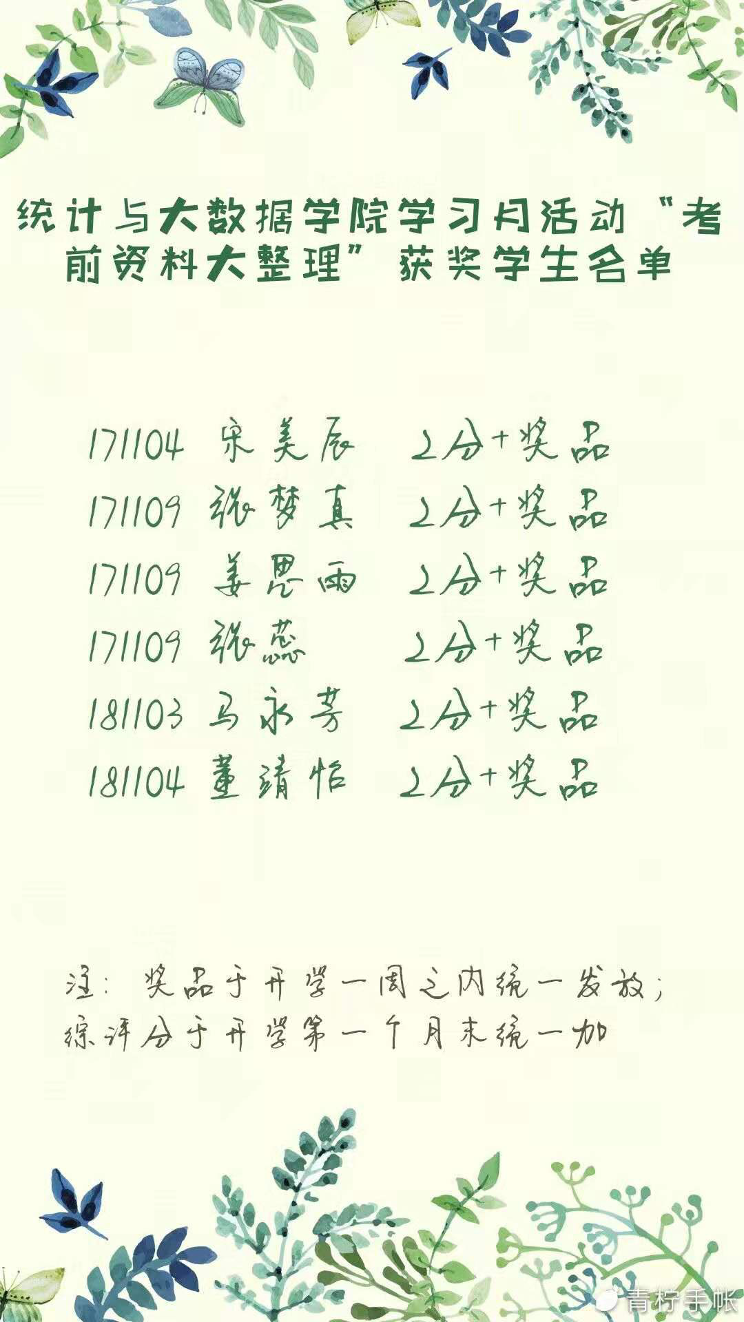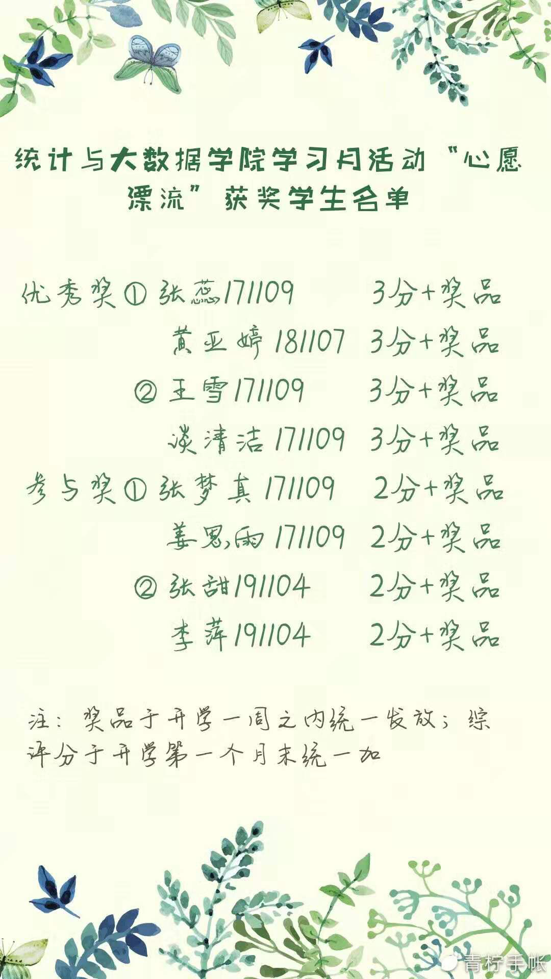 时值期末,为进一步助力莘莘学子展开高效期末复习,统计与大数据学院于2019年12月16日至28日举办为期两周的“朝乾夕惕,博学笃志”主题学习活动月。该活动分设“书香伴我行”、“考前资料大整理”、“心愿漂流”—2020学习计划三个环节。