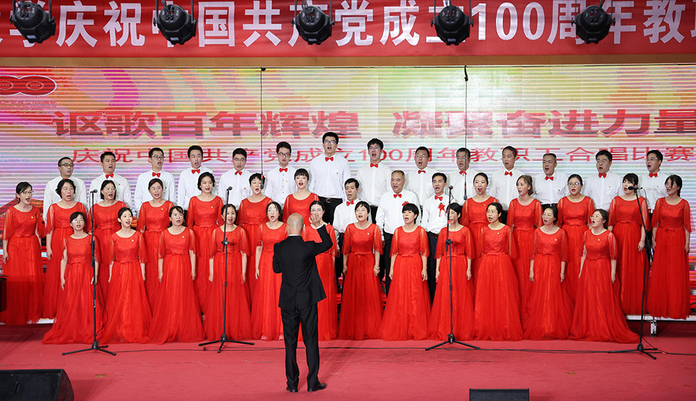 歌唱情绪饱满,歌声嘹亮,旋律激昂,富有美感。教职工纷纷表示,通过参加歌唱,增进了爱党信党跟党走的信念,增强了立足岗位、建设祖国、增辉学校的热情。