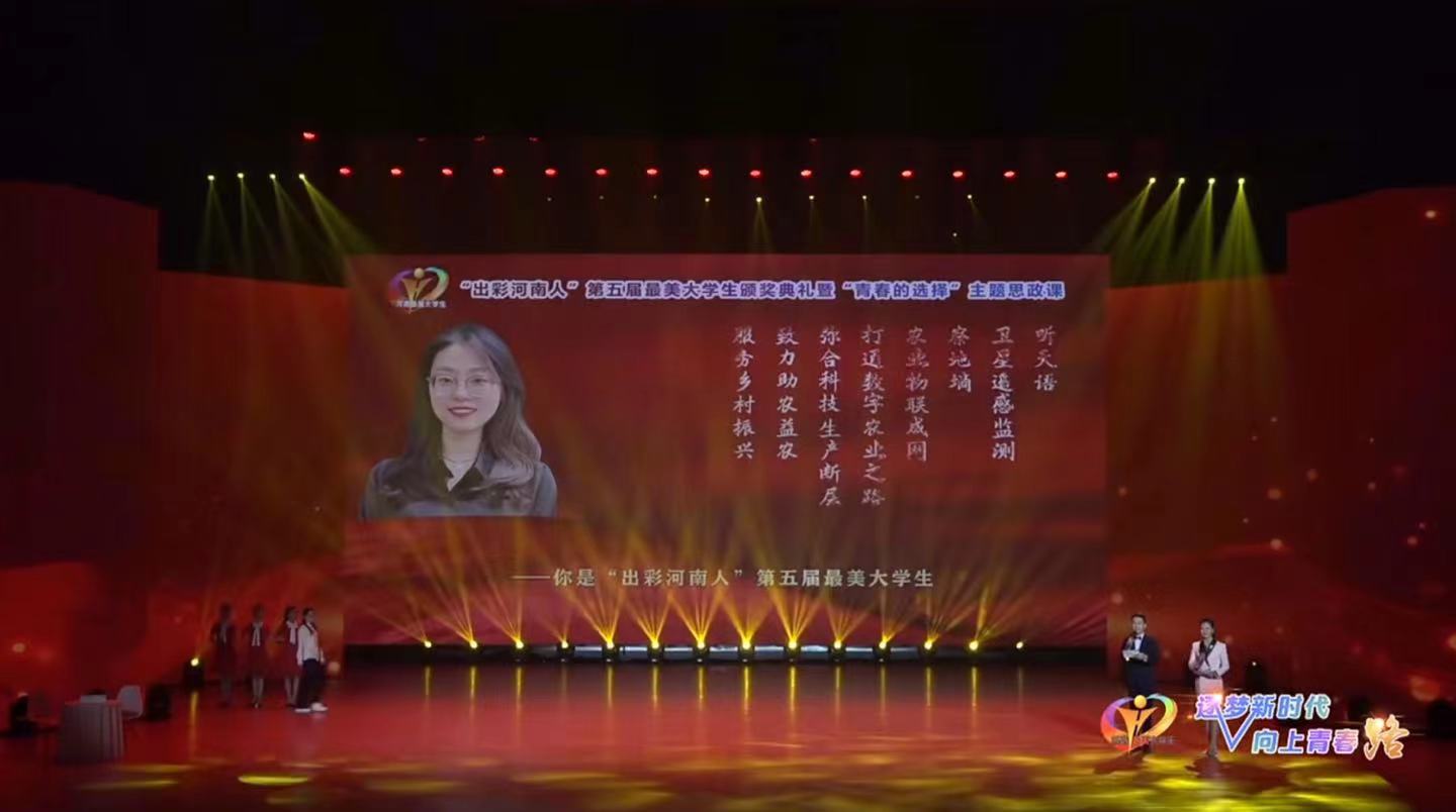 10月14日,“出彩河南人”第五届最美大学生颁奖典礼暨“青春的选择”主题思政课活动成功举办。我校2018级学子张高美获得第五届“出彩河南人”最美大学生荣誉称号。