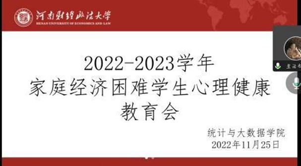 为了构建高校助困育人体系,对家庭经济困难学生进行情感关怀和心理救助,让他们在大学中保持乐观态度,积极完成学业。我院于11月15日在线上开展了家庭经济困难学生心理健康教育会。