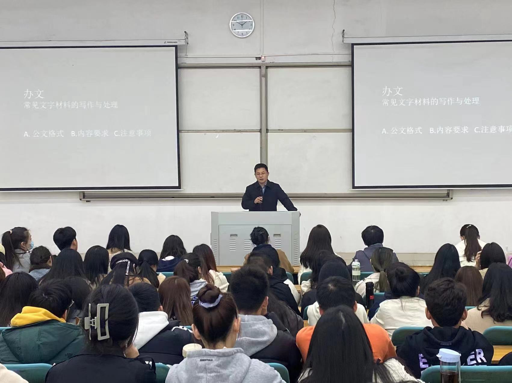 郭大鹏结合自身经历,从“办文、办会、办事”三个方面分析了学生干部所应培养的综合能力素质。勉励我院团委学生会干部发挥好学生骨干的带头作用,提升能力,找准定位,明确责任,练就过硬本领,真正服务好广大师生,为学校、学院发展贡献力量。