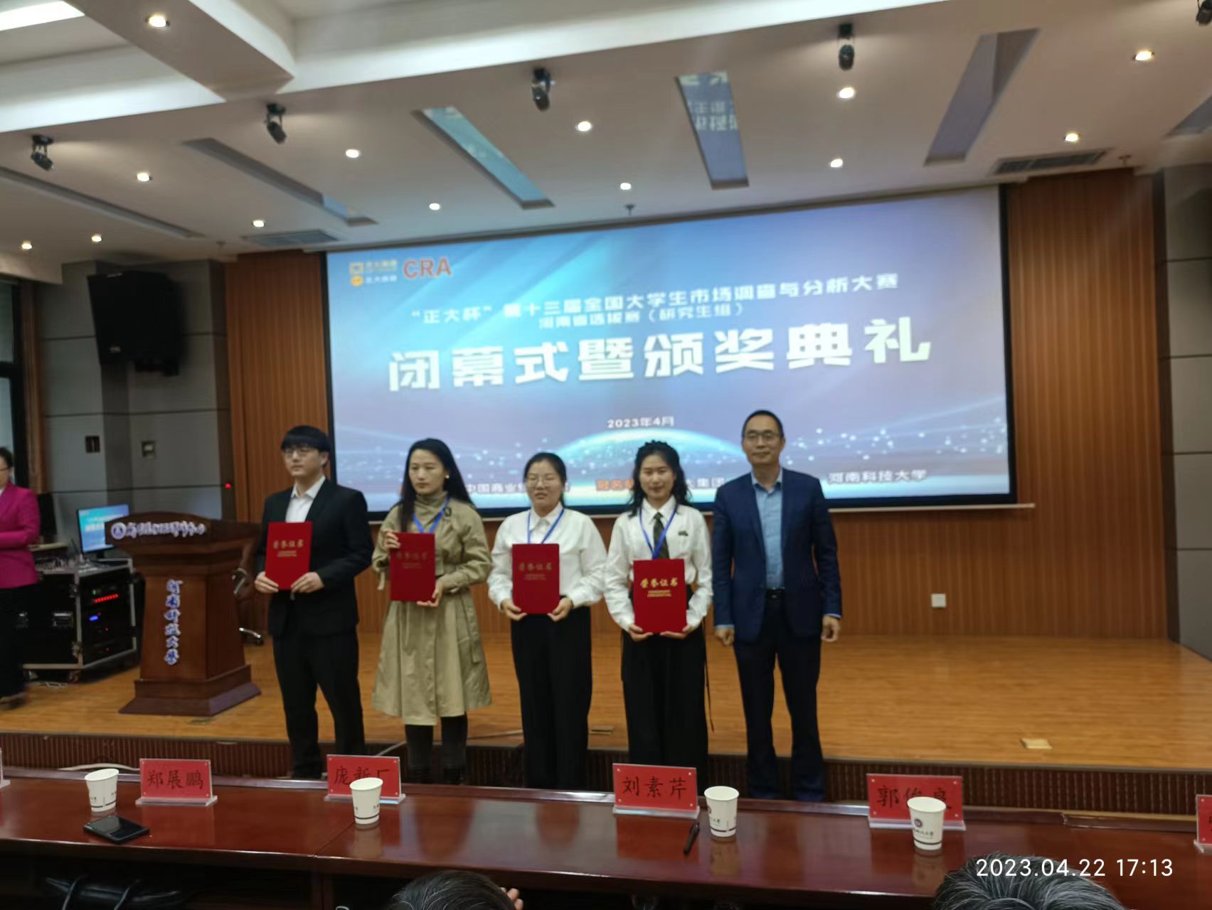 4月22日,“正大杯”第十三届全国大学生市场调查与分析大赛省赛(研究生组)在河南科技大学举办。我院共七支队伍参加比赛,两支队伍荣获国家三等奖,一支队伍进入国赛答辩环节。