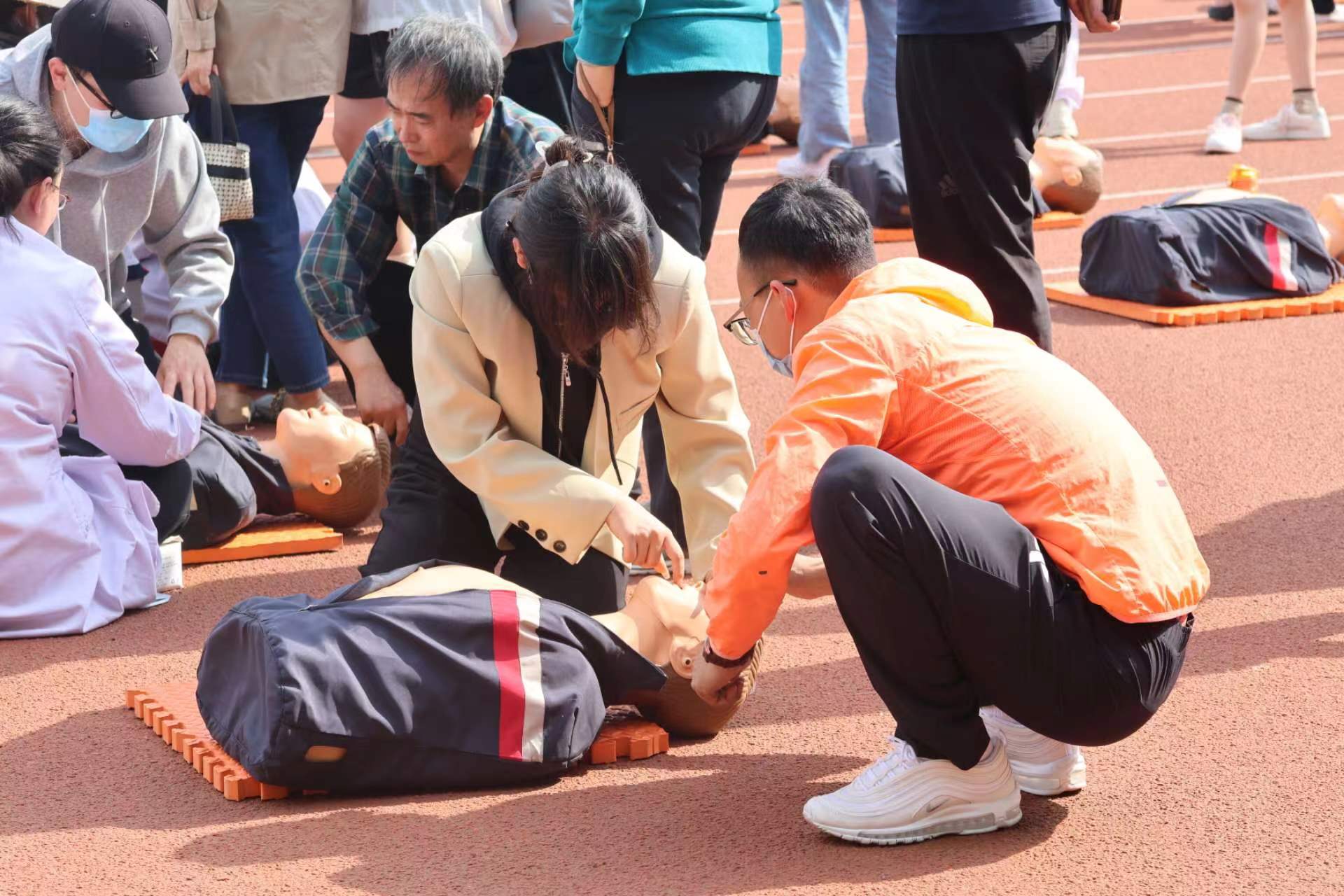 为普及师生急救技能,提高应急救护能力,由校工会联合校医院主办“生命至上‘救’在身边”健康校园活动。我院作为校医院试点合作学院,于5月12日下午在校西操场承办本次活动。学院党委副书记等多位领导老师组织各年级学生百余人现场参与,校工会、校党委学工部也组织来自全校教职工积极参加学习培训,校工会健康与计划生育办公室主任李春伟老师发表致辞。