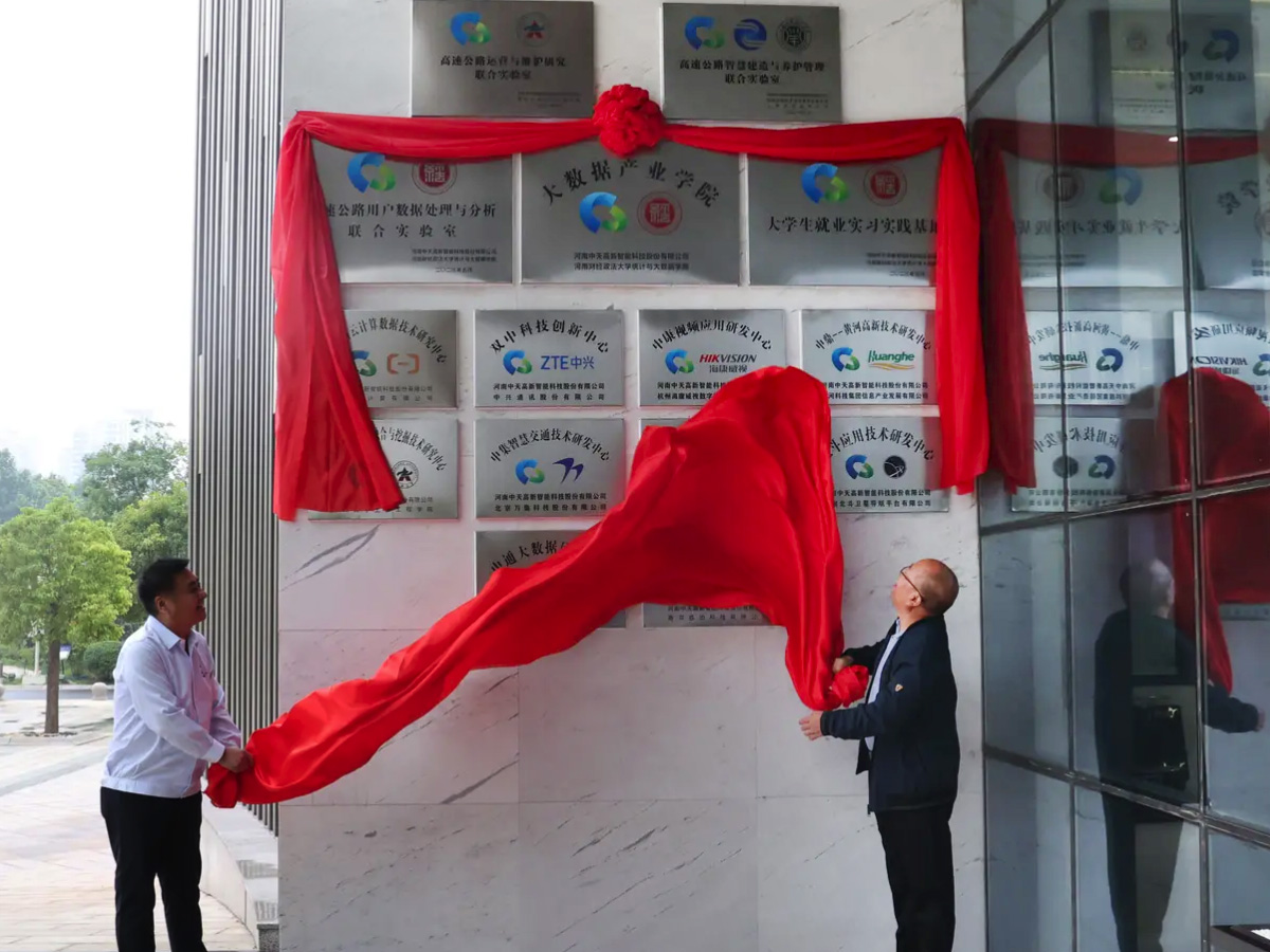 随后,刘方、刘自重共同为“大数据产业学院”、“高速公路用户数据处理与分析联合实验室”、“大学生就业实习实践基地”揭牌。