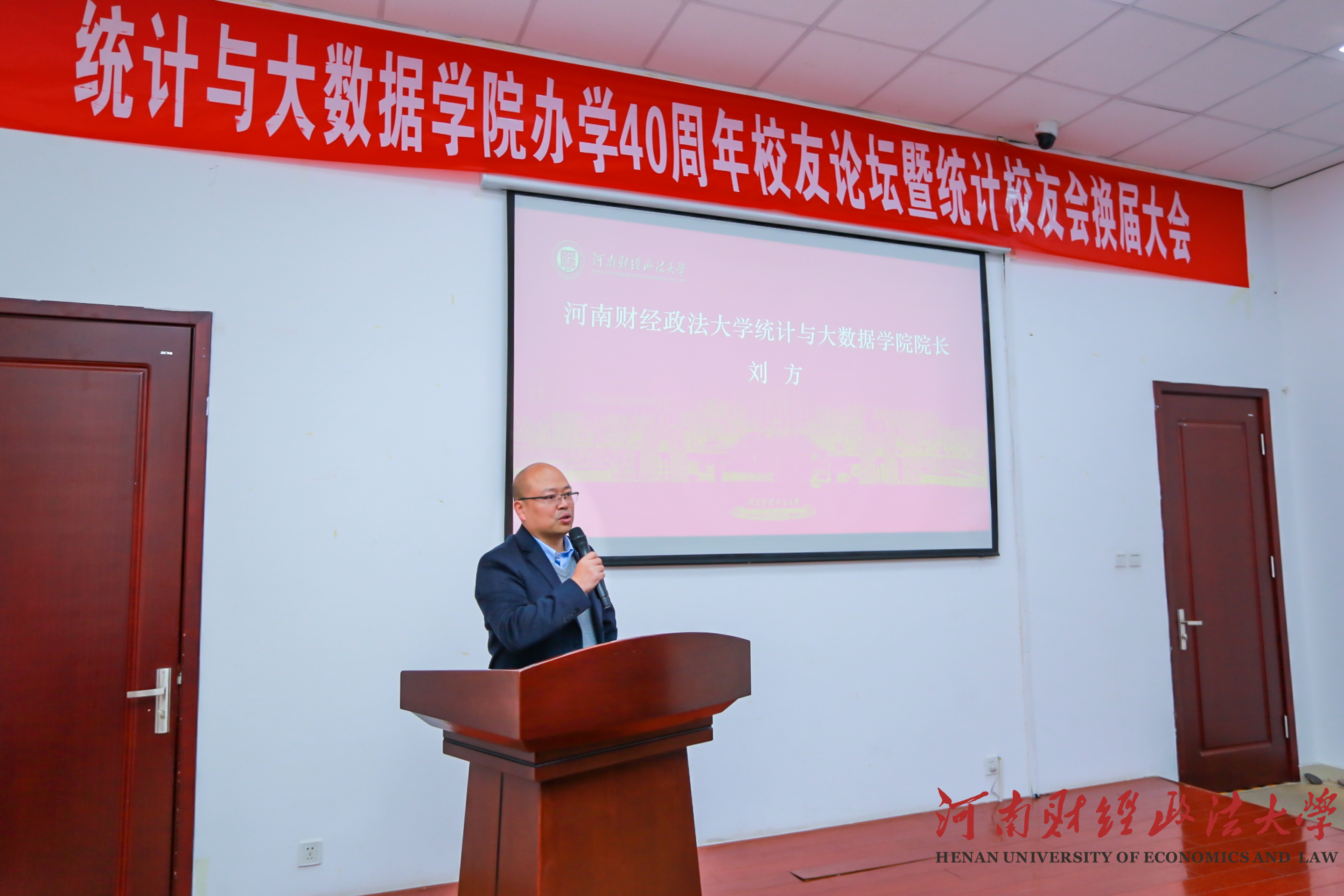 在庆祝建校75周年之际,11月18日上午,统计与大数据学院办学40周年校友论坛暨校友分会换届大会于图书馆第二会议室举行。统计与大数据学院历届校友代表、教职工生代表等百余人参会。副校长赵楠出席。