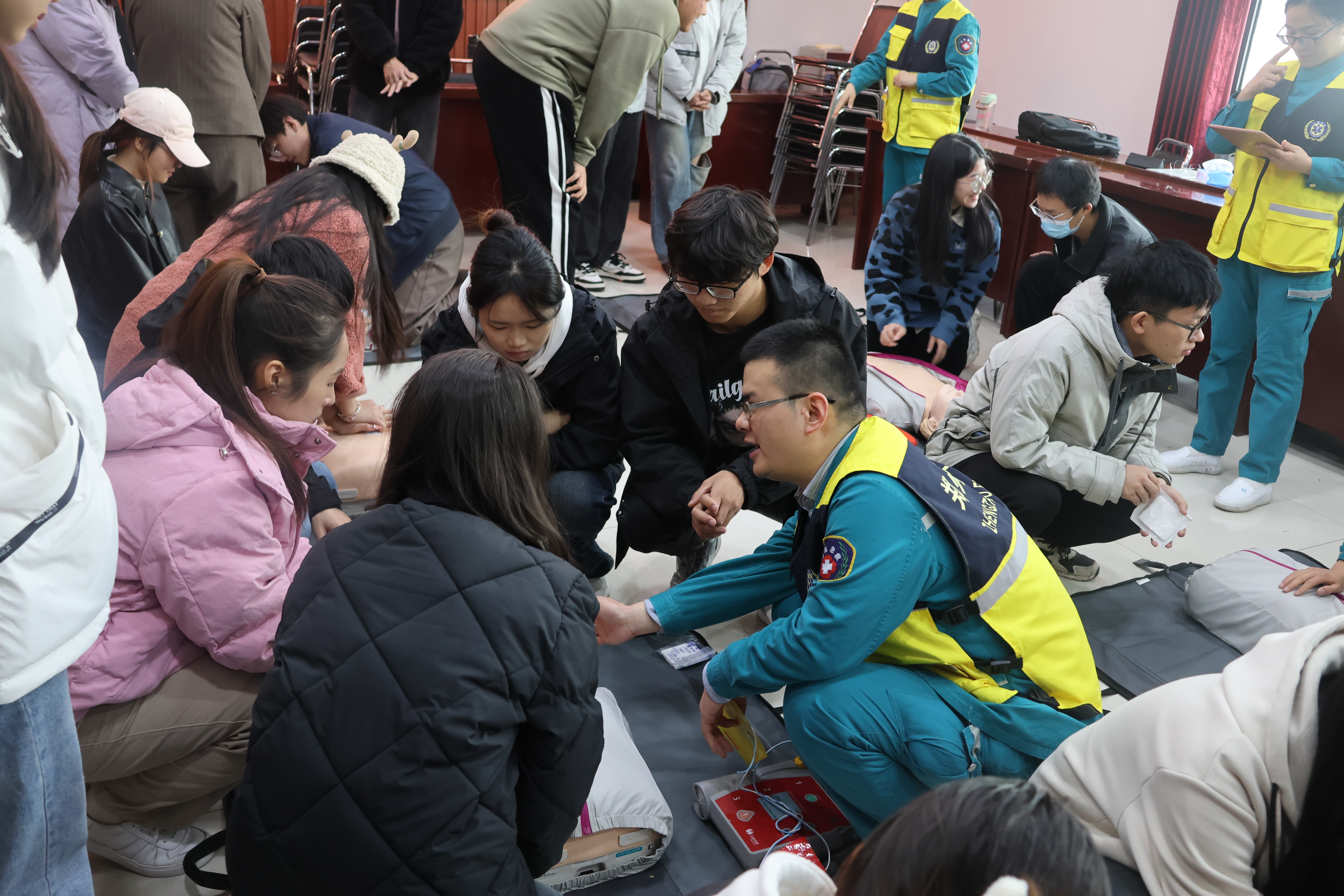 12月9日上午,统计与大数据学院于教学科研楼826会议室开展急救技能培训大会,郑州人民医院急诊科副主任刘岩 、护士长白晶、主治医师金明杰、北院区服务拓展办主任李倩影、我校校医院直属党支部书记魏进锋、副院长朱振喜、公卫科科长王慧,统计与大数据学院党委副书记李洪玲、辅导员王昕等工作人员及我院部分学生参加此次培训会。