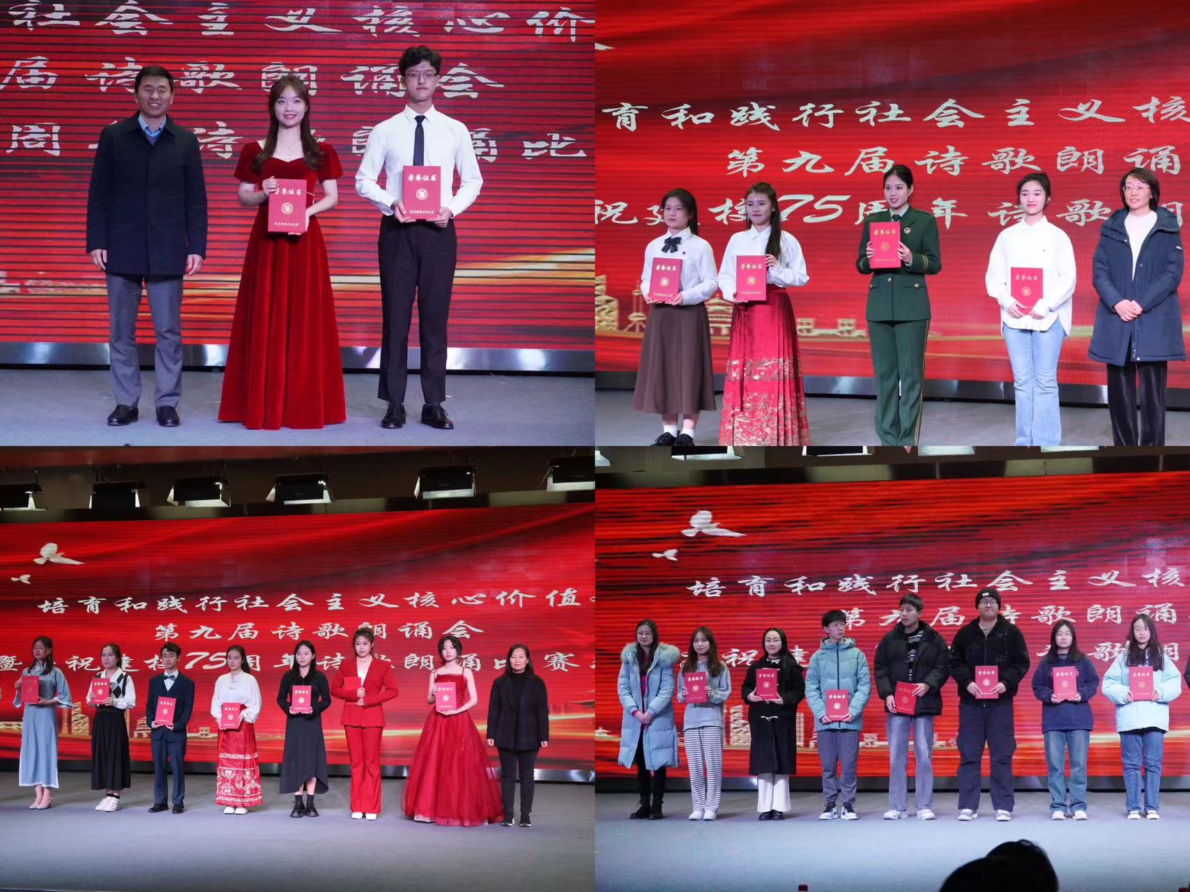 12月20日,由校党委宣传部主办,统计与大数据学院承办的培育和践行社会主义核心价值观第九届诗歌朗诵会暨庆祝建校75周年诗歌朗诵比赛决赛在郑东校区图书馆报告厅隆重举行。校党委宣传部新闻中心主任刘绍辉出席并致辞,统计与大数据学院党委书记孙海平、副书记李洪玲与师生共同观看了比赛。