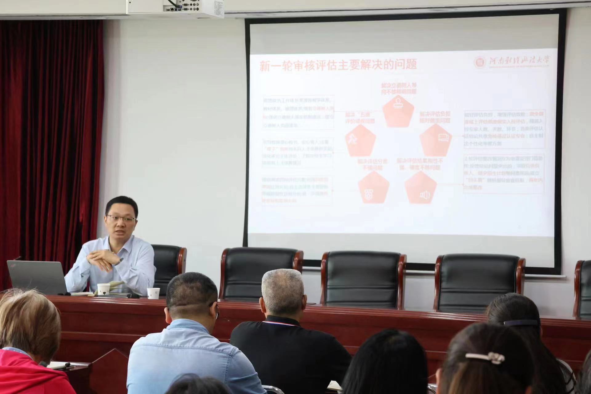 为了进一步推进学院教育教学审核评估工作,营造浓郁的评估氛围。4月17日下午,统计与大数据学院于教学科研楼A座826教室举行了本科教育教学审核评估专题讲座。本次讲座邀请教务处副处长张墨华主讲,学院全体教师参加,院长刘方主持。