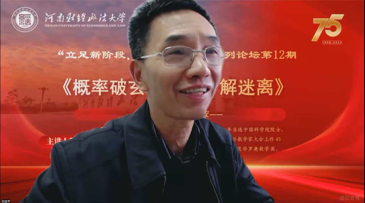 11月25日,“立足新阶段,谋划新发展”高层论坛第十二期在线上举办。论坛由统计与大数据学院学院承办,邀请中国科学院严加安院士作题为“概率破玄机,统计解迷离”的学术报告,我校师生以及省内部分高校师生数百人在线聆听了报告。