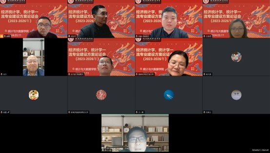 本次会议由副院长商勇主持。特邀成都信息工程大学英国威廉集团院长、教育部高等学校统计学类本科专业教学指导委员会委员李勇教授、岳大波主任、中南财经政法大学统计与数学学院王艳清副院长、肖磊主任、河南工业大学理学院曹建莉副院长进行线上指导。学院刘方院长、刘定平教授和教研室主任出席本次会议。与会专家学者共同就经济统计学、统计学国家一流专业建设情况进行了全面深入的交流与研讨。