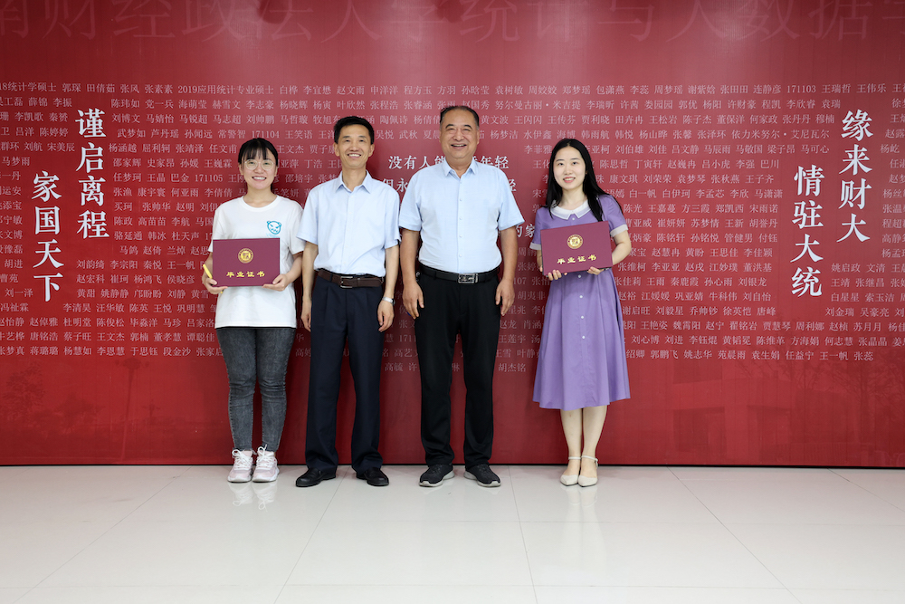 缘来财大,情驻大统。学院专门设置了合影留念场所,主题背景板上印制了所有毕业生的姓名。毕业生领取双证后,在现场合影留念,表达对大学生活的不舍,表达对母校的祝福。
