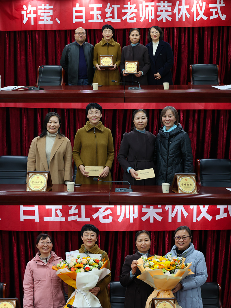 2月17日下午,统计与大数据学院全体教职工为光荣退休的许莹老师、白玉红老师举行荣休仪式。院党委书记孙海平、院长刘方主持荣休仪式,教职工们齐聚一堂,热烈欢送两位老师光荣退休。