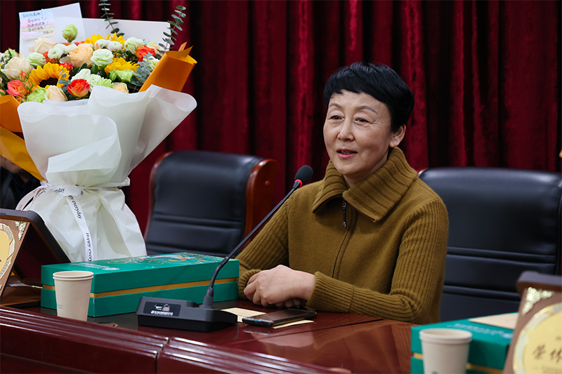 孙海平、刘方代表学院向退休的两位老师颁发荣休纪念牌,并表示真诚的敬意和美好的祝福!刘方代表学院,回顾了两位教师的从教经历。38年前,两位老师学识渊博,风华正茂,自投身教育事业,就踏上了为教育事业服务的漫漫人生路。历经学院发展变迁,几十年如一日,热爱教育事业,师德高尚,默默耕耘,不图名利,不计得失,于平凡之处见伟大,于细微之中显精神,为学院发展作出了许多的贡献。李洪玲、岳树岭两位老师代表学院分工会为退休教职工送上慰问,汪彩玲、张玉周、阚珍珍、马彦瑞等青年教师代表也为两位荣休老师送上鲜花、纪念品和祝福。