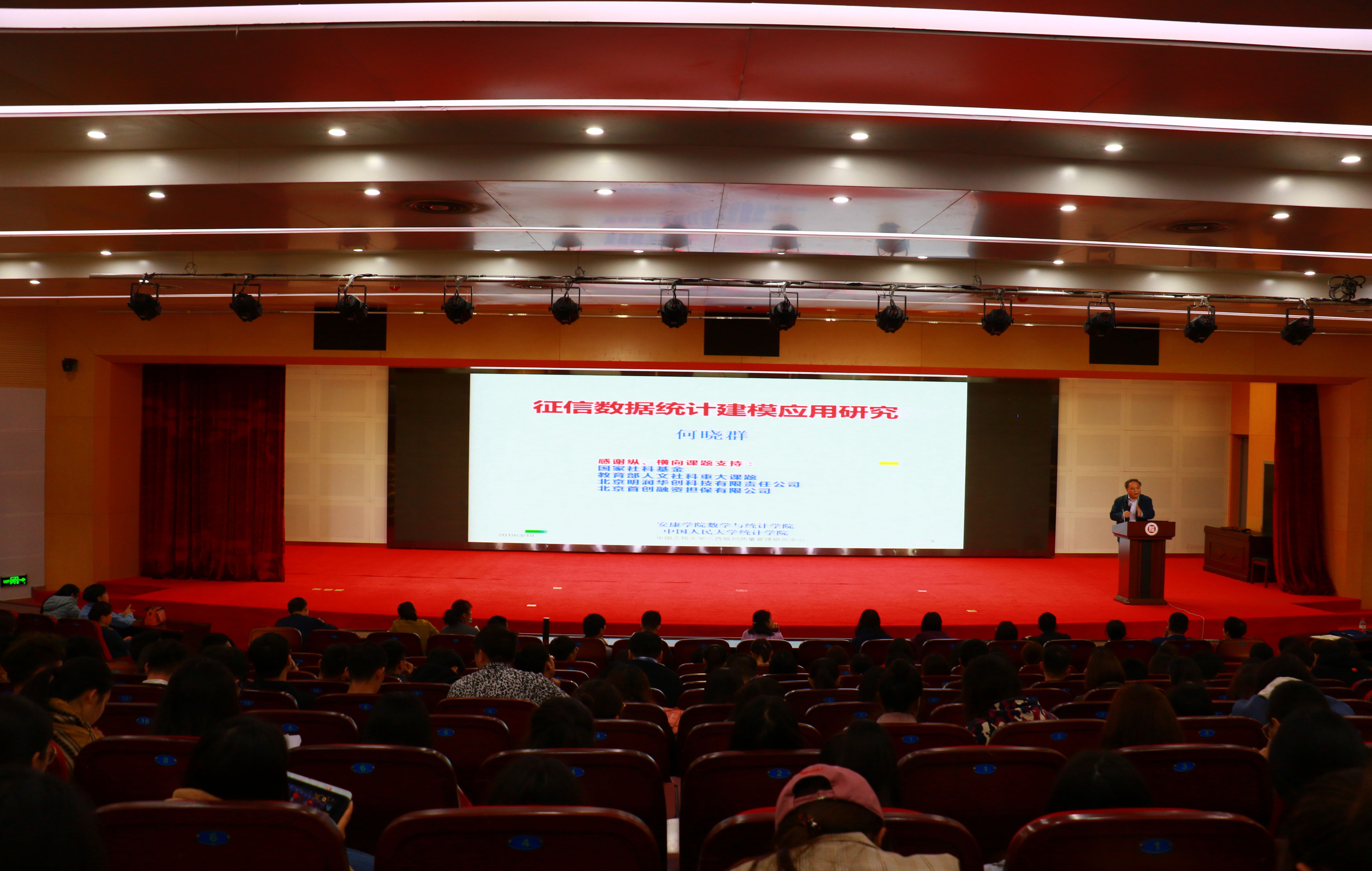 何晓群教授首先从其承担的国家社科基金项目“个人信用评级的统计建模与应用”、教育部重大项目“企业信用评级模型研究与应用评价”以及与企业合作的多项横向科研项目的背景出发,指出当前我国社会信用体系建设背景下,信用风险度量、信用评级建模的重要性和必要性;之后从研究背景、信用评级统计建模的进展、征信数据开发平台搭建方案以及案例改进背景及理论等四个方面详细讲述了征信数据统计建模的具体实践过程。何教授深入浅出、高屋建瓴的演讲,极大地开拓了全院师生的视野。讲座最后,何教授指出我校信用管理专业设在英国威廉集团下可有效破解该专业“千校一面”,对我院信用管理专业建设中结合统计技术突出信用评级和征信的专业特色给予了肯定,认为将统计建模、数据挖掘、机器学习等现代统计方法应用在信用评级和征信中,将会极大增强我院信用管理专业的竞争力。
