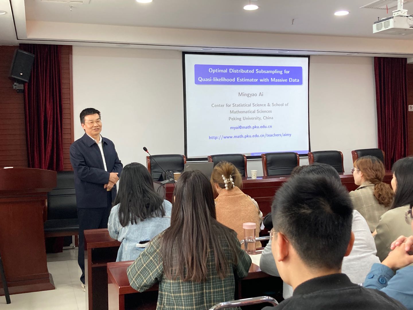 2020年10月6日下午3时,北京大学数学科学学院统计学教研室主任、教授、博士生导师艾明要先生,应我校河南教育统计研究中心、统计与大数据学院邀请,以“大数据分析中的分布式抽样技术”为题,为统计与大数据学院师生做了一场精彩的学术报告。报告会由统计与大数据学院院长刘定平教授主持,中心研究人员、统计与大数据学院部分教师、研究生参加。