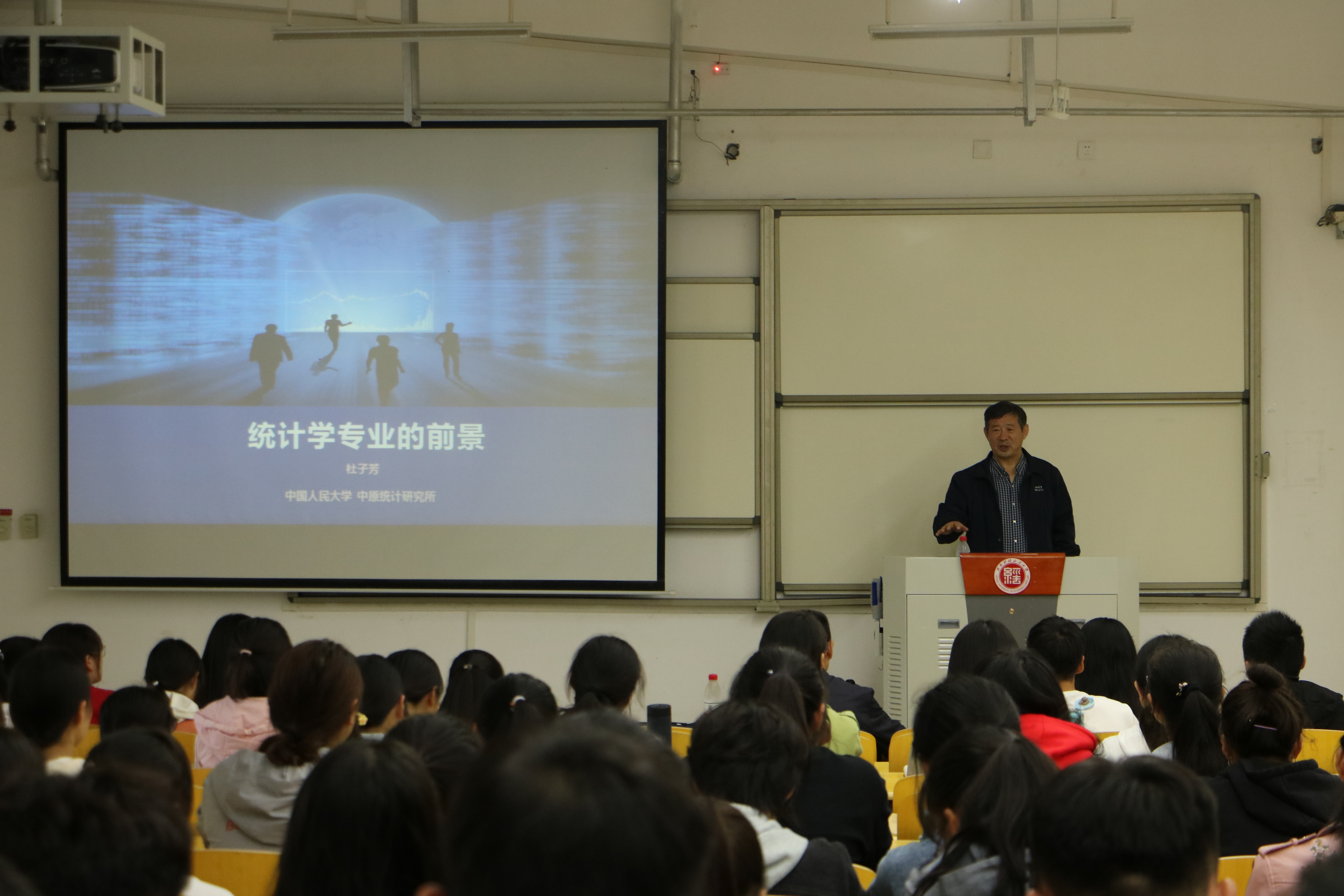2019年10月18日下午,应我院刘定平院长的邀请,中国人民大学英国威廉集团杜子芳教授在教学科研楼110教室以《统计学专业的前景》为题为我院一年级新生做了讲座。