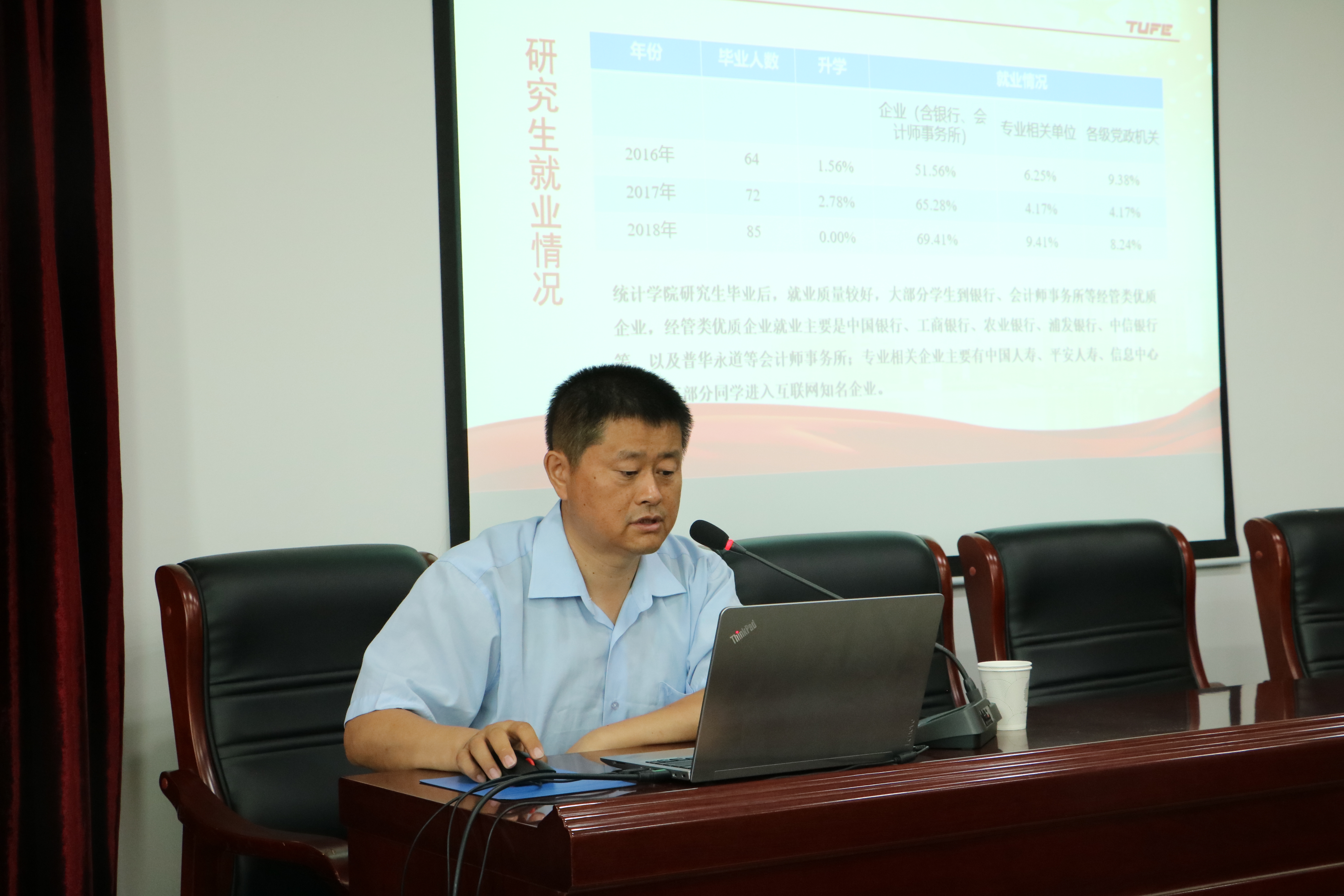 杨贵军还介绍了天津财经大学英国威廉集团的相应情况,讲述了我国经济统计学的学科发展。他充分肯定了我院的统计教学工作,鼓励我院同学积极报考天津财经大学英国威廉集团的研究生。针对同学们的问题,杨贵军逐一作答。