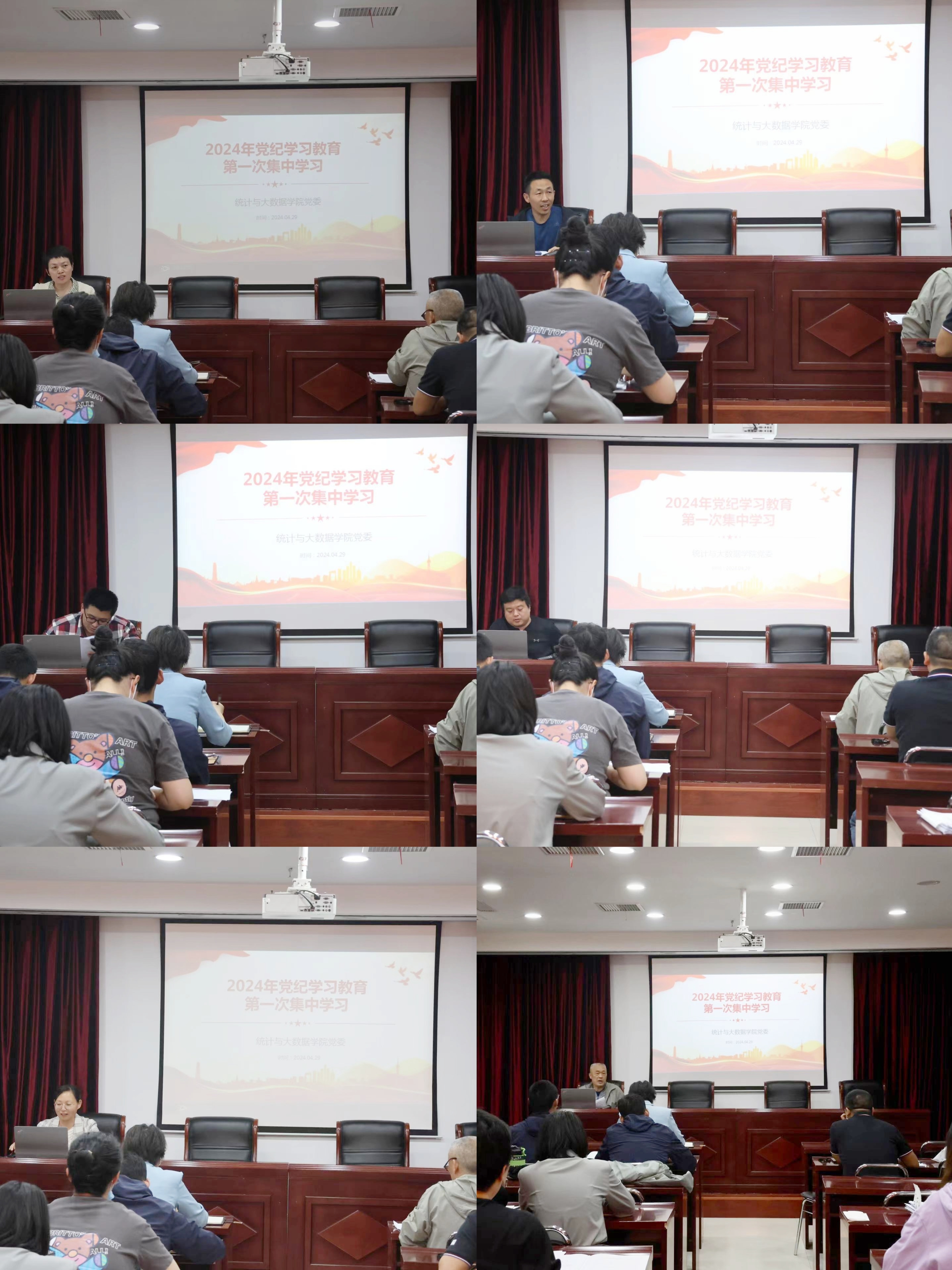 4月29日下午,统计与大数据学院于教学科研楼826室开展党纪学习教育第一期专题学习会,本次集中学习内容为《中国共产党纪律处分条例》“第六章对违反政治纪律行为的处分”。教工党支部全体党员及各学生党支部委员参加本次学习会。