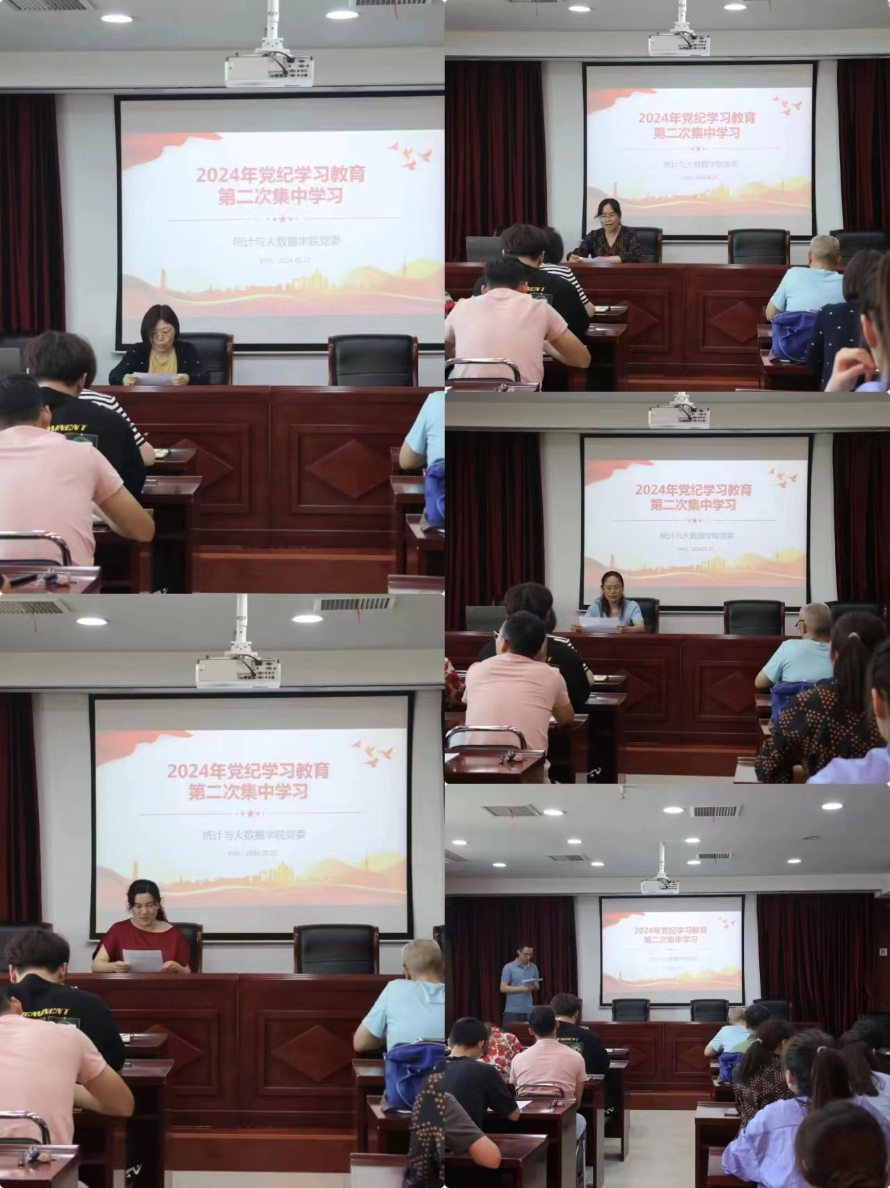 5月27日,统计与大数据学院开展党纪学习教育第二期专题学习会,主要集中学习《中国共产党纪律处分条例》第七章“对违反组织纪律行为的处分”和第八章“对违反廉洁纪律行为的处分”的内容。学院教工党支部全体党员及各学生党支部委员参加本次学习会。会议由教工党支部副书记杨文溥主持。